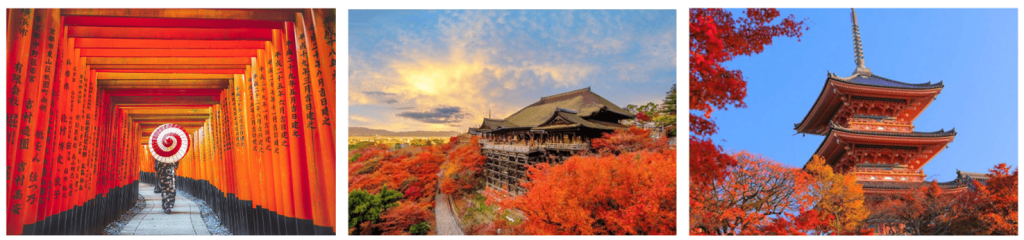 - Cố đô Kyoto với những ngôi đền, chùa cổ kính nổi tiếng.